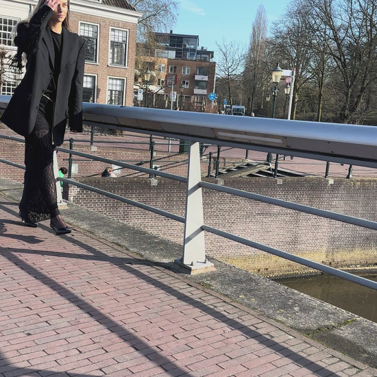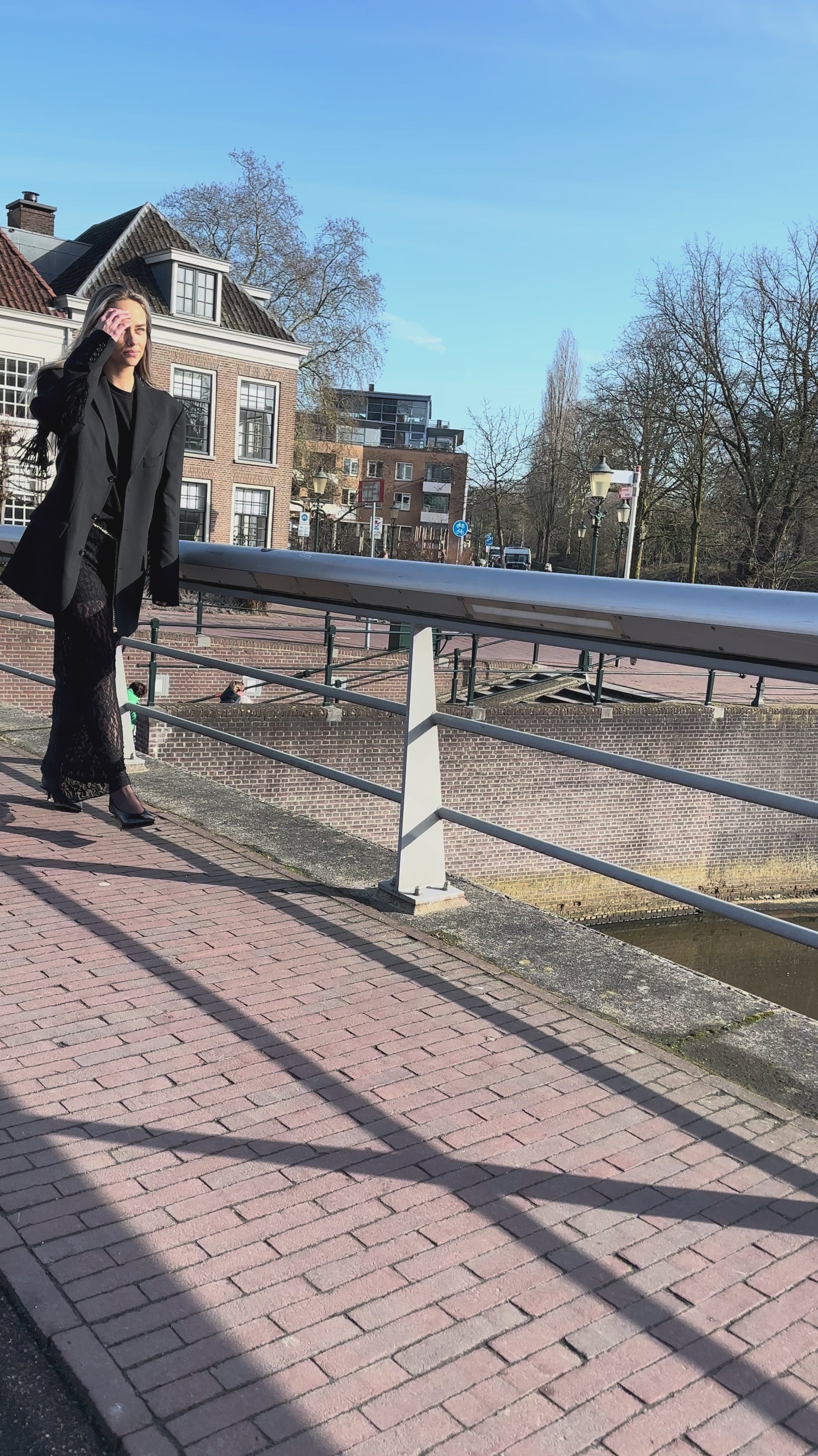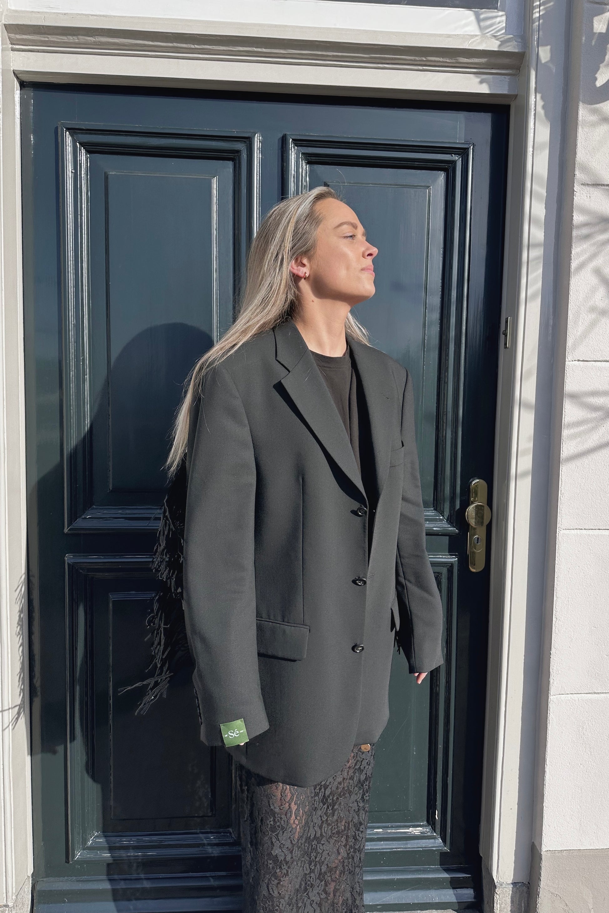 Ons model draagt normaal maat S. Deze blazer is ontworpen in een oversized fit — verwacht een roomy, relaxed shape.