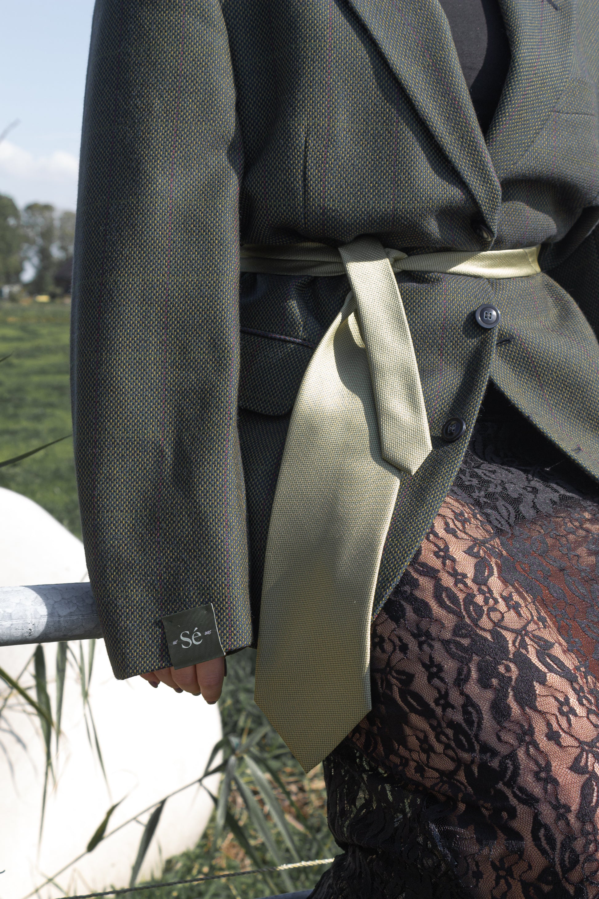 Vintage tie in a soft olive tone with a subtle woven texture. Its natural hue and refined pattern make it a versatile accessory — perfect for adding understated character to any look.